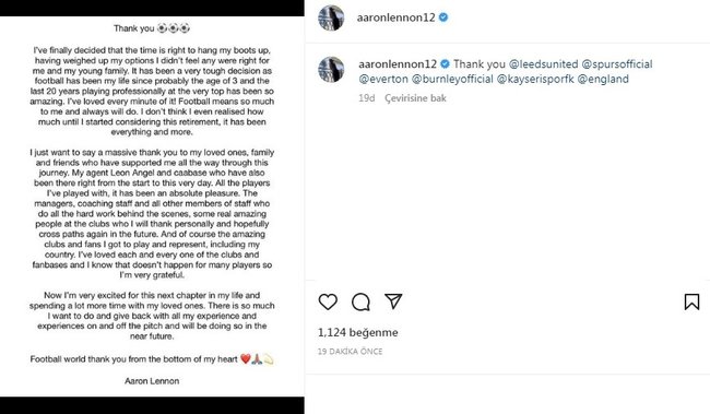İngiliz yıldız futbola son verdiğini, sosyal medya hesabından şu şekilde açıkladı: