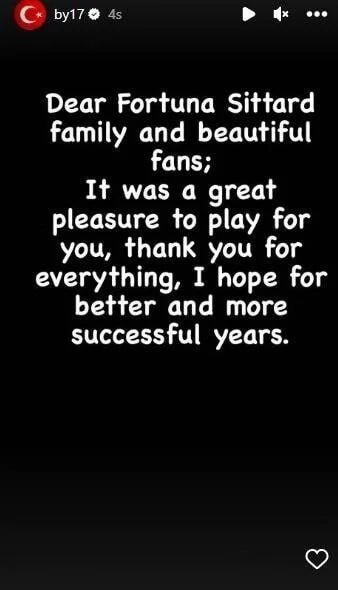 Golcü oyuncu paylaştığı mesajda, "Sevgili Fortuna Sittard ailesi ve harika taraftarları. Sizin için oynamak büyük bir onurdu. Her şey için teşekkür ederim. Daha iyi ve başarılı yıllar dilerim" ifadelerine yer verdi.