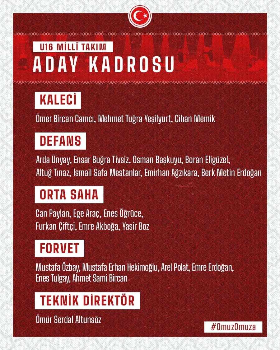 U16 Milli Takımımızın, 19-24 Nisan tarihleri arasında Hırvatistan'da katılacağı UEFA Gelişim Turnuvası'nın aday kadrosu açıklandı.
