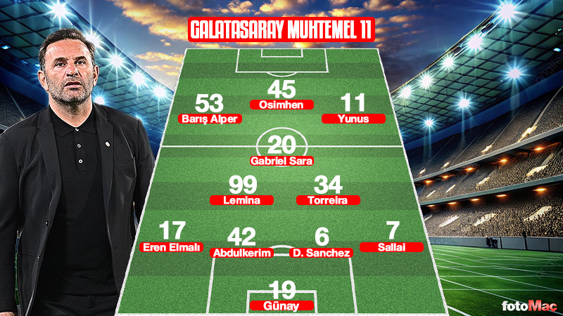 Galatasaray: Günay, Sallai, Davinson, Abdulkerim, Eren, Torreira, Lemina, Sara, Yunus, Barış, Victor Osimhen