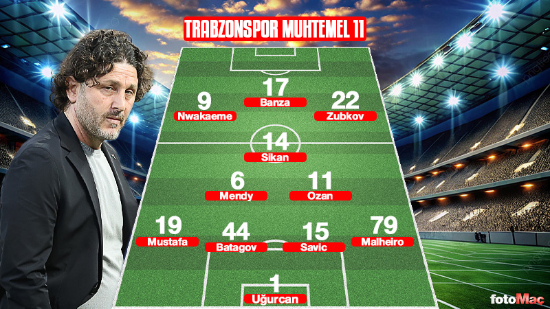 Trabzonspor: Uğurcan, Malheiro, Savic, Batagov, Mustafa, Mendy, Ozan, Zubkov, Sikan, Nwakaeme, Simon Banza