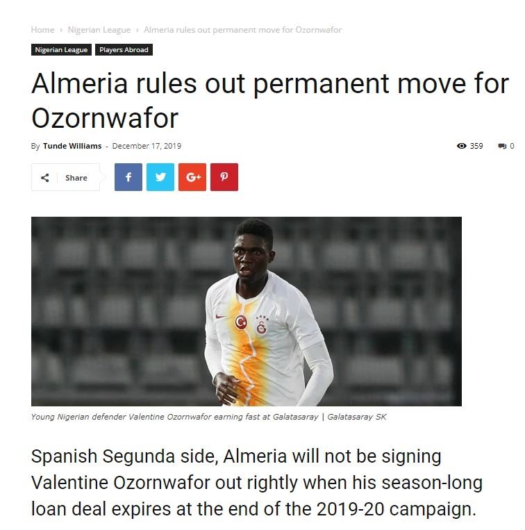 İspanyol basınında yer alan haberlere göre teknik direktör değişikliğine giderek takımın başına Beşiktaş'ın eski yıldızı Guti Hernandez'i getiren Almeira, Ozornwafor'un 1.8 milyon Euro'luk satın alma opsiyonunu kullanmayacak.