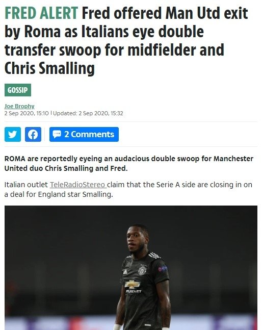 Galatasaray'ın Fred için satın alma opsiyonlu kiralık sözleşme teklifi yapacağı aktarılan haberde Roma'nın, Hem Smalling'i hem de Fred'i kadrosuna katmak için girişimlerde bulunacağı ifade edildi.