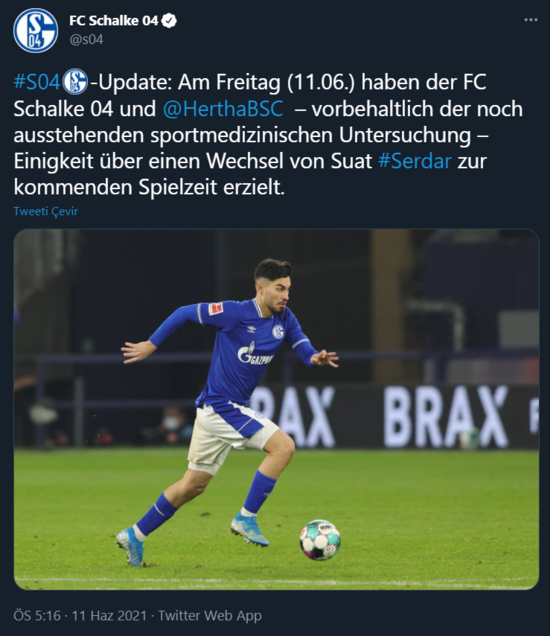 Alman ekibinin sosyal medya hesabından yapılan açıklamada, Suat Serdar'ın Hertha Berlin için sağlık kontrollerinden geçeceği ifade edildi.