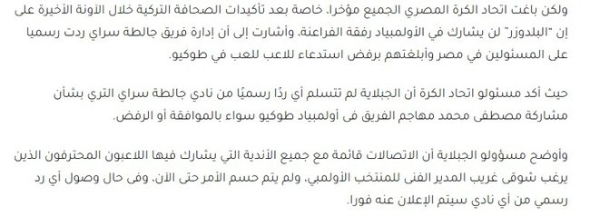 Mısır Olimpik Milli takımı, 22 Temmuz'da İspanya, 25 Temmuz'da Arjantin, 28 Temmuz'da ise Avustralya ile karşılaşacak. Öte yandan Galatasaray, PSV ile Şampiyonlar Ligi ön eleme maçı oynayacak var ilk düdük, 20 Temmuz 2020 Salı günü saat 19.00'da çalacak.