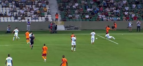 Süper Lig'in 1. haftasının kapanış maçında Giresunspor ile Galatasaray karşı karşıya gelirken, maçın ilk yarısında tartışmalı bir penaltı kararı çıktı.