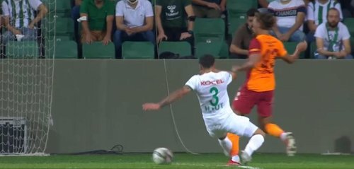 Mücadelenin 39. dakikasında Galatasaray, Sacha Boey'un yerde kaldığı pozisyon sonrası penaltı kazandı. Giresunsporlular müdahalenin ceza sahası dışında yapıldı yönünde itirazlarda bulunurken, pozisyonu VAR uyarısı sonrası izleyen hakem Erkan Özdamar, penaltı kararını değiştirmedi.