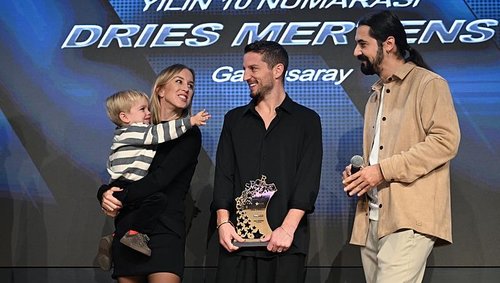 G.Saray'ın tecrübeli futbolcusu Dries Mertens, yılın 10 numarası seçildi. Mertens ödül törenine eşi Katrin Kerkhofs ve oğlu Ciro ile beraber geldi. Dries Mertens: "Galatasaray aileme ve buradaki herkese çok teşekkür ederim, burada oynadığım için çok mutluyum. Aileme de buradan çok teşekkürlerimi sunuyorum" diyerek duygularını paylaştı.