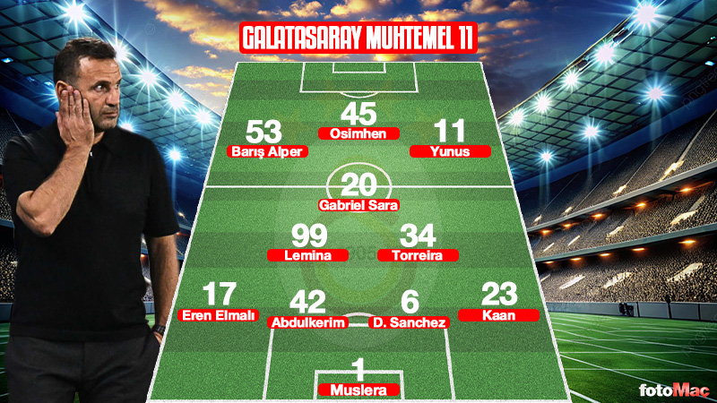 Sarı-kırmızılılarda Sivasspor karşılaşması öncesinde Victor Osimhen, Davinson Sanchez ve Gabriel Sara da sarı kart sınırında bulunuyor. Söz konusu 3 futbolcu, müsabakada sarı kart görmeleri durumunda 35. haftada deplasmandaki Trabzonspor maçında cezalı olacak.
