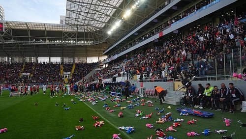 Gençlerbirliği taraftarı, İsrail'in Gazze'deki soykırımına dikkati çekmek amacıyla tribünde Filistin bayrağıyla 'Free Palestine' yazılı pankart açtı. Taraftarlar, 'Kahrolsun İsrail, Filistin'e özgürlük' sloganı attı.