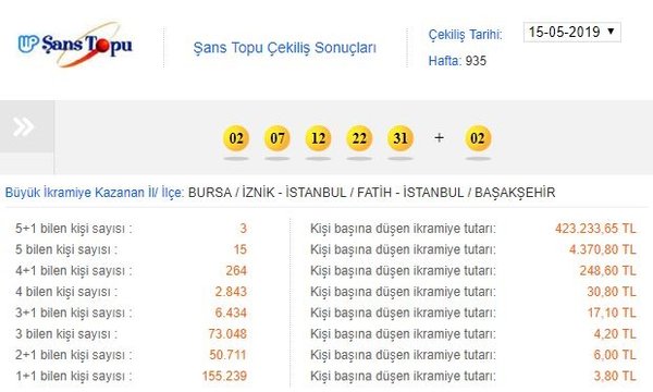 ŞANS TOPU ÇEKİLİŞ SONUÇLARI İÇİN TIKLAYINIZ