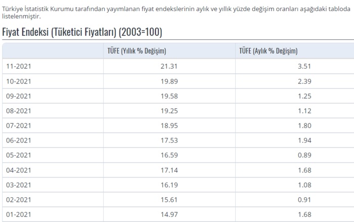 TÜİK verilerine göre, 2021'in ilk 6 ayında (ocak-haziran) 2021 yılının ilk 6 aylık enflayson toplamı 5.45 olarak gerçekleşti. Temmuz-kasım aylarını kapsayan 5 aylık dönem farkı ise yüzde 10.7 oranında gerçekleşti. Aralık ayı rakamının da ilan edilmesi ile birlikte memur ve emekli maaşı enflasyon farkı zammı, 3 Ocak 2022 tarihinde belli oldu.