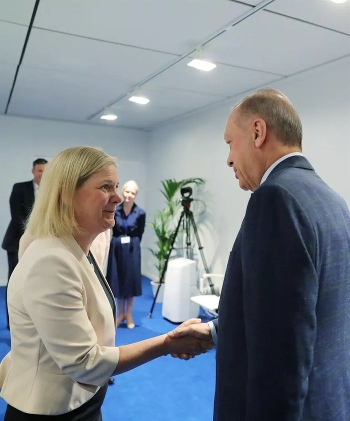 "NATO Zirvesi öncesi Cumhurbaşkanı Tayyip Erdoğan ve İsveç Başbakanı Magdalena Andersson ile NATO Genel Sekreteri Jens Stoltenberg'in desteği ile kapsamlı bir görüşme gerçekleştirdi. Uzlaşı Mutabakatı, Finlandiya, İsveç ve Türkiye'nin birbirlerinin güvenlik tehditlerine karşı birbirlerine tam destek verme konusunda taahhüt verdi. Biz NATO müttefiki olurken bu taahhüt daha da güçlendirilecek."