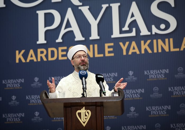 TDV ile beraber 1993 yılından bu yana aralıksız şekilde büyük bir hassasiyetle vekaletle kurban kesim organizasyonu düzenlediklerini ifade eden Erbaş, "Amacımız, kurbanlarını vekalet yoluyla kestirmek isteyen vatandaşlarımıza yardımcı olmak, kurban ibadetinin dini esaslara göre eda edilmesini ve sosyal boyutunun en güzel şekilde yerine getirilmesini sağlamaktır. Kurban etlerini daha fazla ihtiyaç sahibine ulaştırarak bayram sevincini ve mutluluğunu daha fazla kardeşimizle paylaşmak, mazlum, mağdur ve muhtaçlarla kardeşlik bağımızı kuvvetlendirmektir." diye konuştu.