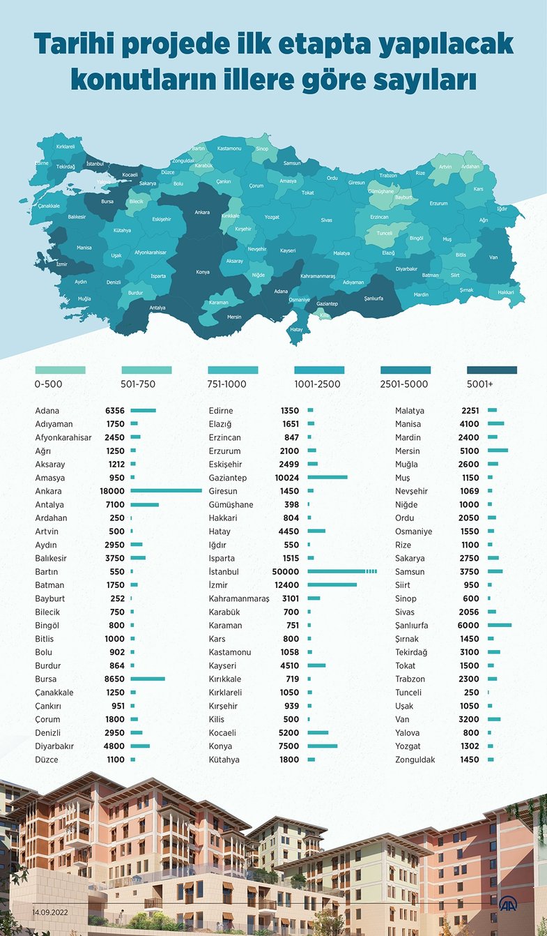 81 ilde yapılacak TOKİ sosyal konut projesi başvuru tarihleri belli oldu. Cumhuriyet tarihinin en büyük sosyal konut projesinin detayları, Başkan Recep Tayyip Erdoğan'ın 13 Eylül tarihinde yapacağı açıklama ile netleşti. Buna göre başvurular, 14 Eylül 2022 tarihinde başlayacak ve Ekim ayının sonuna kadar devam edecek.