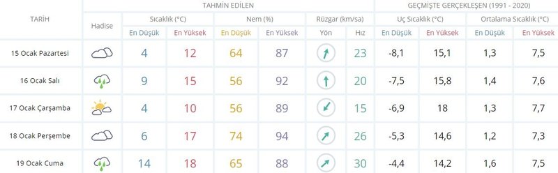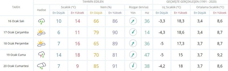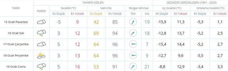 Hava sıcaklığının düşüşte olacağı şehirde, Meteoroloji'nin 5 günlük tahmininde kar yağışı görülmüyor.