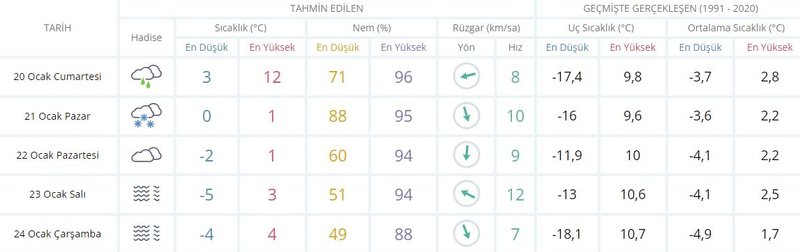 ESKİŞEHİR 5 GÜNLÜK HAVA DURUMU TAHMİNİ