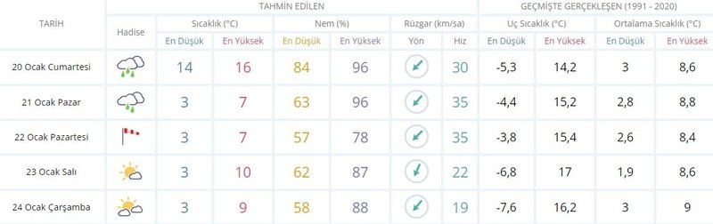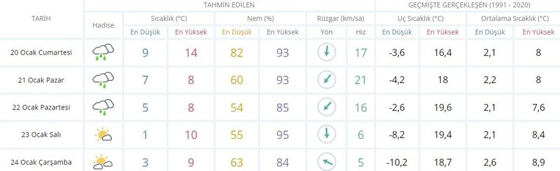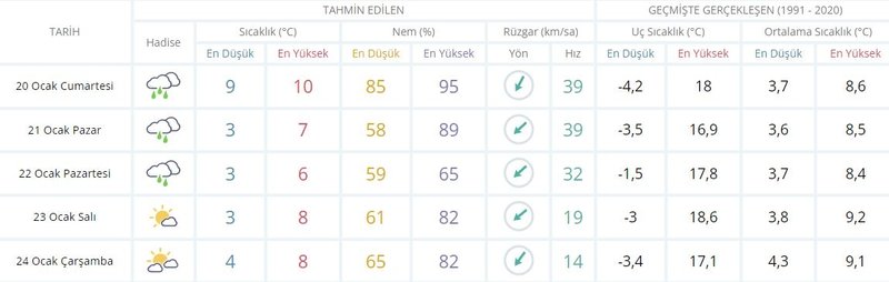 İSTANBUL 5 GÜNLÜK HAVA DURUMU TAHMİNİ