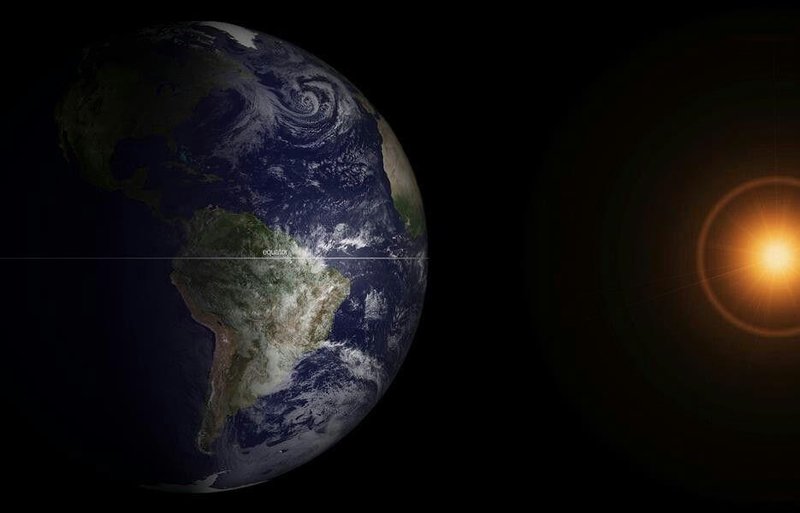 İlkbahar ekinoksunda Kuzey ve Güney Yarım Küre, Güneş ışınları öğle vakti Ekvator'a 90 derecelik açı ile düşer. Gölge boyu Ekvator'da sıfırdır. Güneş ışınları bu tarihten itibaren Kuzey Yarım Küre'ye dik düşmeye başlar. Bu tarihten itibaren Güney Yarım Küre'de geceler, gündüzlerden uzun olmaya başlar. Kuzey Yarım Küre'de ise tam tersi olur. Bu tarih Güney Yarım Küre'de Sonbahar, Kuzey Yarım Küre'de İlkbahar başlangıcıdır. Aydınlanma çemberi kutup noktalarına teğet geçer. Bu tarihte Güneş her iki kutup noktasında da görülür. Dünya'da gece ve gündüz süreleri birbirine eşit olur. Bu tarih Güney Kutup Noktası'nda altı aylık gecenin, Kuzey Kutup Noktası'nda ise altı aylık gündüzün başlangıcıdır.