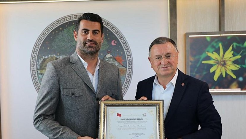 Kahramanmaraş merkezli depremlerde Hatay'da yaşanan yıkım sonrası yardım isterken döktüğü gözyaşlarıyla hafızalara kazınan Hatayspor Teknik Direktörü Volkan Demirel'e fahri hemşerilik beratı verildi.