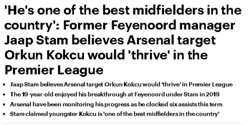 Hollanda Ligi ekiplerinden Feyenoord'da forma gien Orkun Kökçü, genç yaşta ortaya koyduğu performansla İngiliz devi Arsenal'in dikkatini çekmiş ve sezon sonu Premier Lig'e transfer olacağı iddia edilmişti.