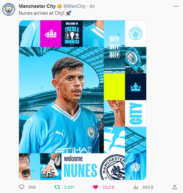 Transferinin ardından kulübün internet sitesine konuşan Nunes, "Avrupa şampiyonu ve uzun zamandır hayranı olduğum Manchester City'ye katıldığım için çok mutluyum. Gelmiş geçmiş en iyi teknik direktörlerden Pep Guardiola ve dünyanın en iyi oyuncularından bazılarıyla birlikte çalışma fırsatını geri çeviremezdim." ifadelerini kullandı.