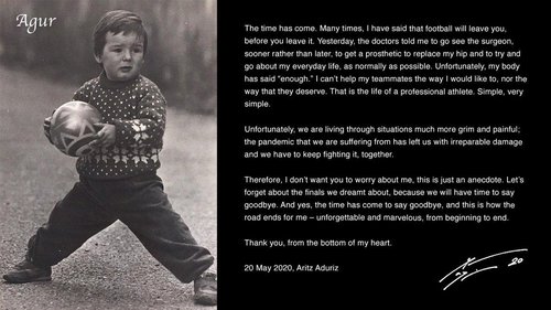 Yeni tip corona virüsü (Covid-19) salgınına atıfta bulunan Aduriz, "Maalesef çok daha zor ve acılı bir dönemden geçiyoruz. Telafisi olmayan acılar bırakan salgına karşı hepimiz mücadeleye devam etmeliyiz. Bu yüzden benim için endişe etmeyin, bu sadece bir anektod." açıklamasında da bulundu.