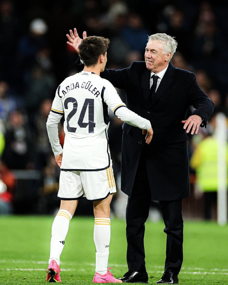 Arda Güler'in attığı gol sonrası Real Madrid Teknik Direktörü Carlo Ancelotti de milli yıldızı tebrik etti. Arda'ya sarılan Ancelotti'nin mutluluğu gözlerden kaçmadı.