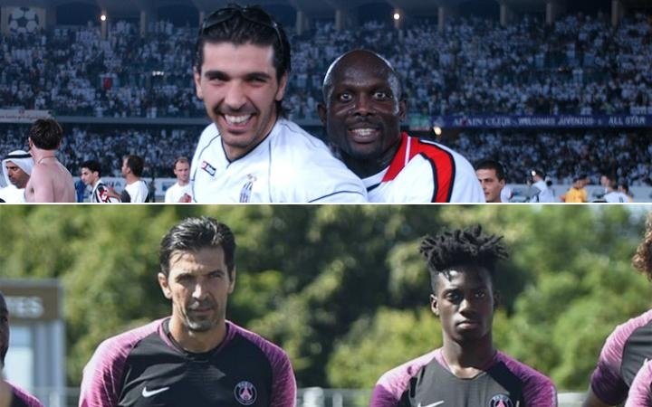 Gigi Buffon, 1997 yılında Parma'da beraber oynadığı Fransız efsane futbolcu Lilian Thuram'ın oğlu ile Fransa Ligue 1 PSG-Guingamp maçında karşılıklı ter döktü. Thuram ailesi, 40 yaşındaki yaşayan efsanenin aynı sahada top koşturduğu üçüncü baba-oğul oldu.