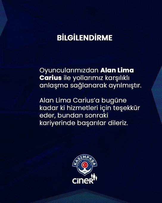 Ara transferin son günlerine yaklaştıkça, kulüplerdeki hareketlilik artıyor. Süper Lig takımlarından Kasımpaşa, 23 yaşındaki orta saha oyuncusu Alan Lima Carius ile yollarını ayırdığını duyurdu.