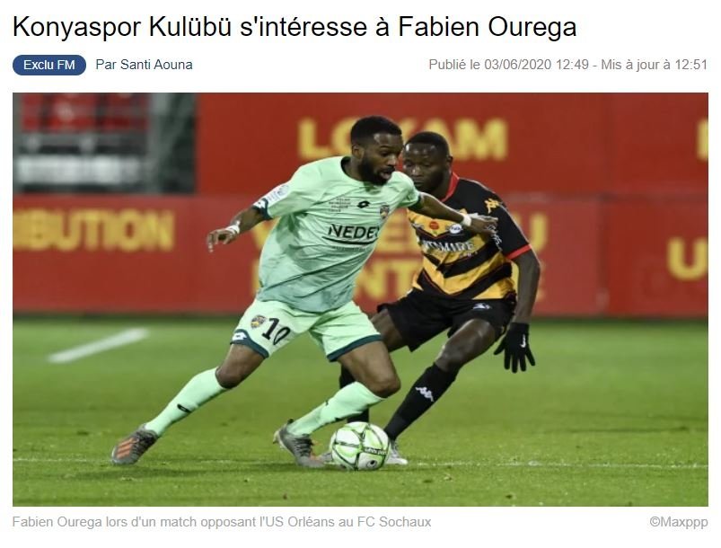 Süper Lig ekiplerinden Konyaspor'un transfer gündemine aldığı isim ortaya çıktı. Fransız basınından Footmercato, yeşil-beyazlı kulübün, Sochaux'da forma giyen 27 yaşındaki orta saha oyuncusu Fabien Ourega'yı istediğini yazdı.