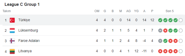 Grupta oynadığı tüm maçları kazanan A Milli Takım'ımız, 2. sıradaki Lüksemburg ile arasında 5 puan var. Şayet Milliler, evinde konuk edeceği Lüksemburg ile berabere kalması durumunda grup liderliğini garantileyerek Uluslar B Ligi'ne yükselecek.