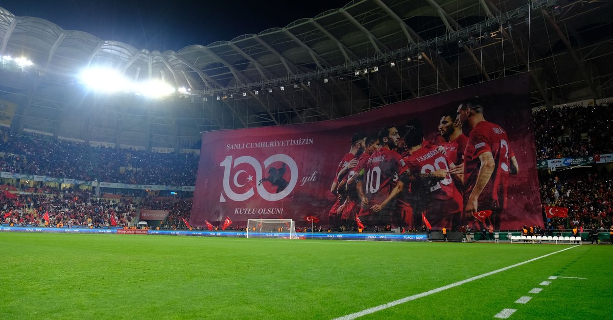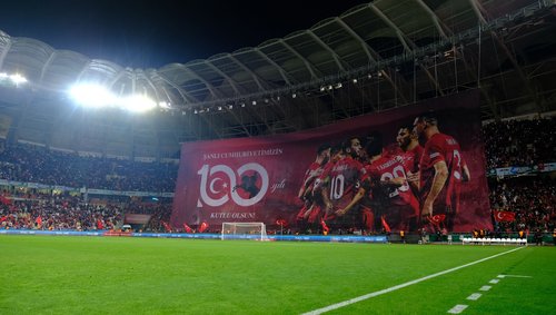 A Milli Takım'ın uğurlu statlarından Konya'da ay-yıldızlılar yeni bir destan daha yazdı. Futbolseverler Konya Büyükşehir Belediye Stadı'nı hınca hınç doldururken 90 dakika boyunca millileri destekledi. Güney tribünde, ay-yıldızlıların fotoğrafının yer aldığı, "Şanlı Cumhuriyetimizin 100. Yılı Kutlu Olsun" yazılı dev pankart açıldı.