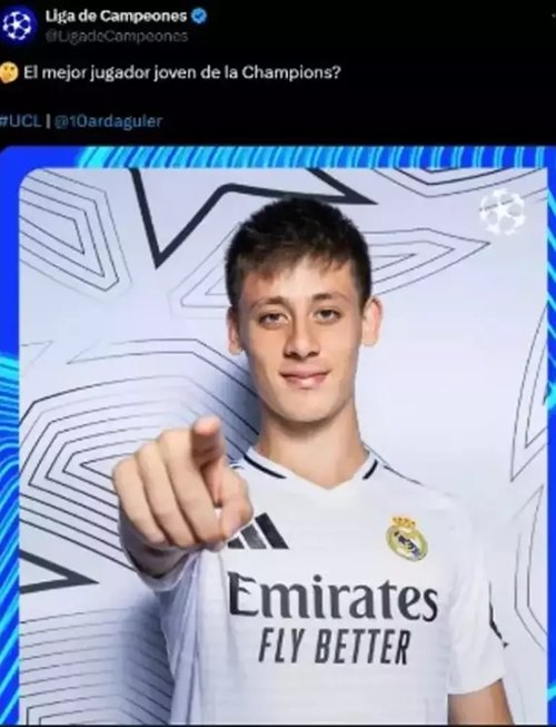 İspanyol devi Real Madrid'in Türk yıldızı Arda Güler, UEFA tarafından X'te yapılan paylaşımla Şampiyonlar Ligi'nin en iyi genç oyuncusu olarak gösterildi.