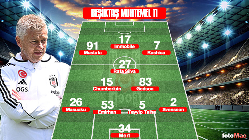 Beşiktaş: Mert, Svensson, Tayyip Talha, Emirhan, Masuaku, Gedson, Chamberlain, Rafa Silva, Rashica, Mustafa, Immobile