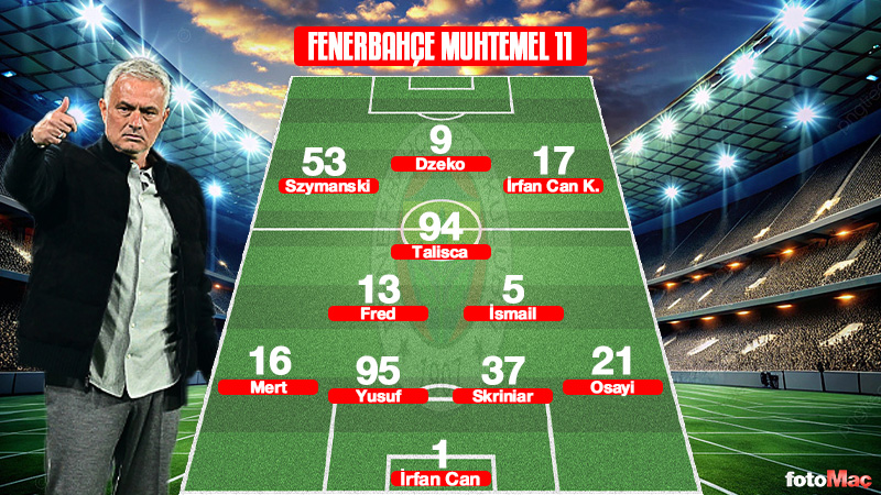 Fenerbahçe: İrfan Can Eğribayat, Mert, Skriniar, Yusuf, Osayi, İsmail, Fred, İrfan Can Kahveci, Szymanski, Talisca, Dzeko