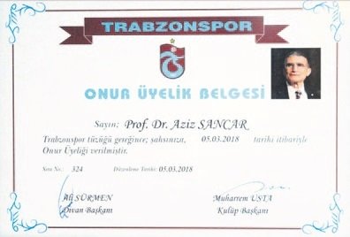 Trabzonspor daha önce 2015 Nobel Kimya Ödülü'nün sahibi Aziz Sancar'a, 'Onur üyelik belgesi' vermeyi teklif etmiş, Sancar da bunu "Çok memnun olurum"diyerek kabul etmişti. Sancar'ın üyelik belgesi hazırlandı. Buna göre Aziz Sancar 5 Mart 2018 tarihi ile bordo-mavili kulübün Onur üyesi oldu.