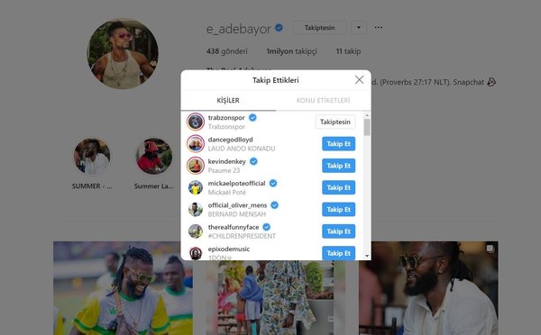 Adebayor transferinde flaş gelişme! Santrfor arayışlarına bir süredir devam eden bordo-mavililerde beklenmedik bir gelişme yaşandı. Deneyimli golcü Emmanuel Adabayor, Trabzonspor'u sosyal medya hesabından takibe aldı. Togolu golcünün bu hamlesi bordo-mavililere transfer olacağı şeklinde yorumlandı.