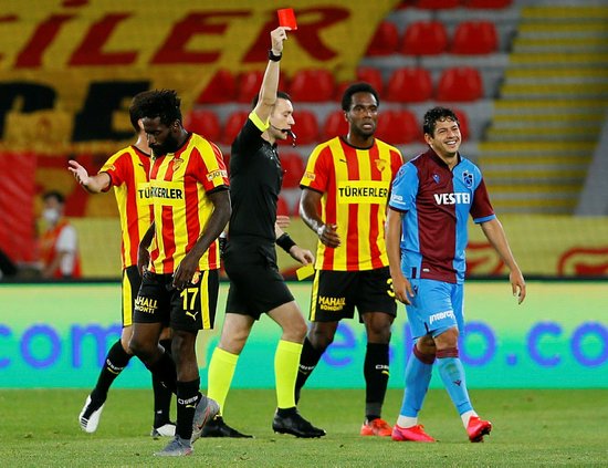 Süper Lig'in 27. haftasında lider Trabzonspor, Göztepe'ye konuk olurken, ilk yarıda Guilherme gördüğü kırmızı kartla takımını 10 kişi bıraktı. .