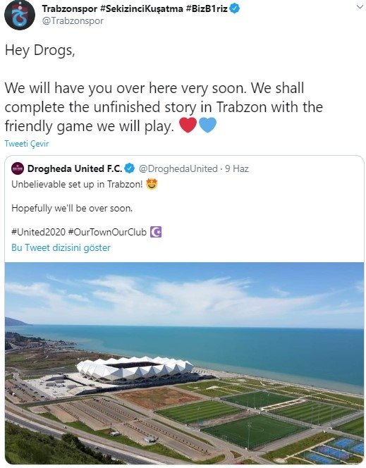 Trabzonspor, İrlanda'da mücadele eden kardeş kulübü Drogheda FC ile hazırlık maçı yapılacağını açıkladı.