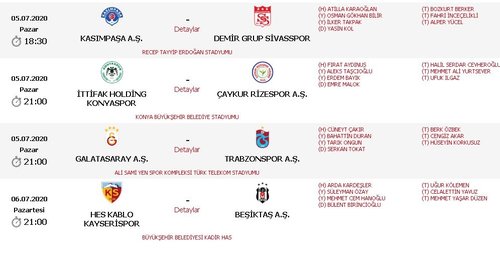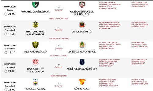30. HAFTANIN PROGRAMI VE HAKEMLERİ ŞÖYLE: