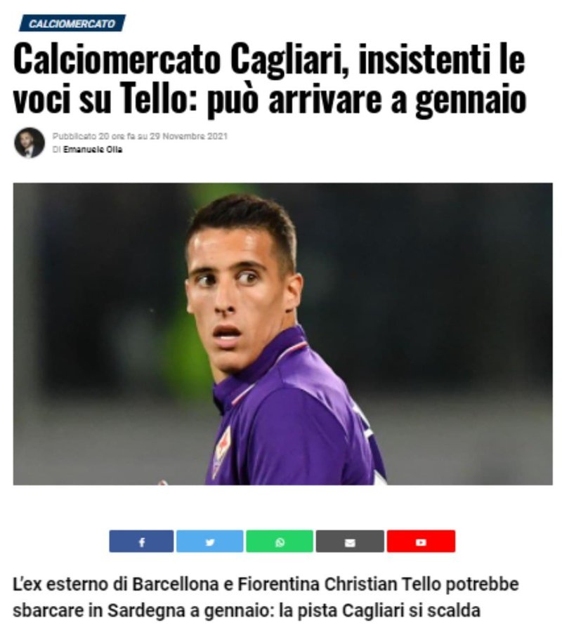 İtalyan basınında yer alan haberde İtalya Serie A takımlarından Cagliari'nin de yıldız futbolcu için devreye girdiği iddia edildi.