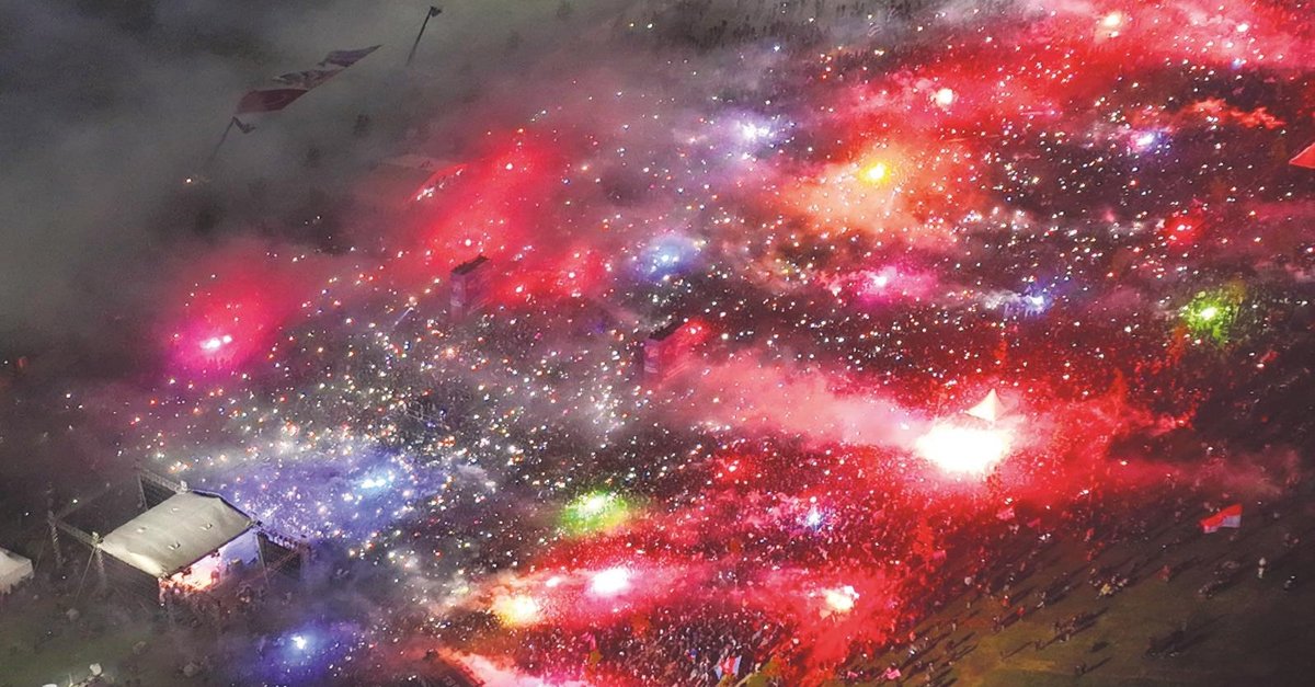 340 bin kişinin cep telefonu ışıklarını sallayarak katıldığı coşku gözler önüne serildi. Taraftarlar meşaleler ve havayı fişeklerle kutlama anları görenleri kendine hayran bıraktı. Bu video, kısa sürede büyük beğeni topladı.