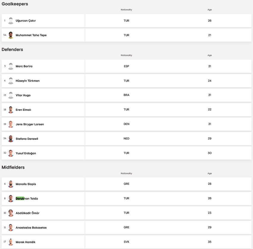 İŞTE TRABZONSPOR'UN KADROSU👇