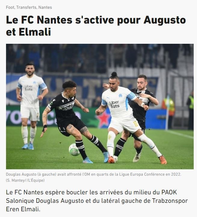 fotomac.com.tr'den Tuğçe Erginkoç'un L'Equipe'ten aktardığı habere göre Nantes, Eren Elmalı için nabız yokluyor. Fransız ekibinin oyuncuya 4 yıllık bir sözleşme önerdiği ifade edildi. Öte yandan Trabzonspor'un, milli oyuncu için 5 milyon euro talep ettiği de aktarıldı.