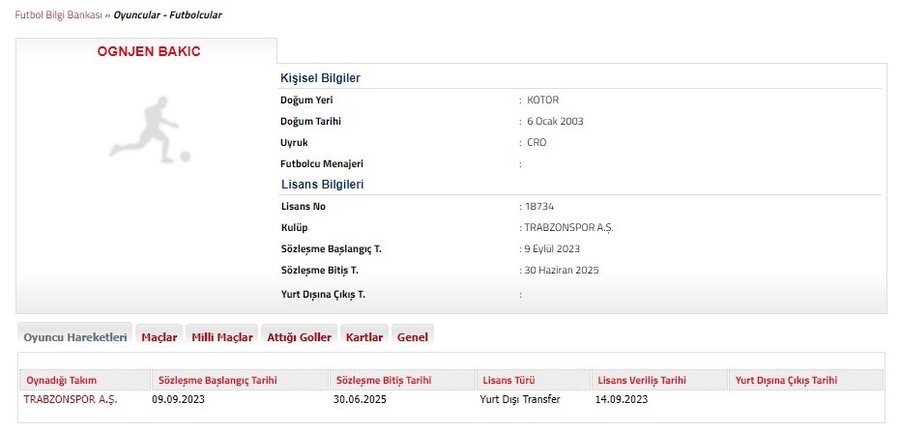 Bordo-mavili takımın yeni transferlerinden 20 yaşındaki Ognjen Bakic'in lisansı çıkarıldı.