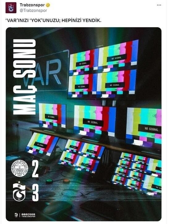 Maçtan sonra Trabzonspor'un sosyal medyadan yaptığı paylaşımda "'VAR'INIZI 'YOK'UNUZU; HEPİNİZİ YENDİK" denildi ve maçtaki hakem ve VAR kararlarına gönderme yapıldı.