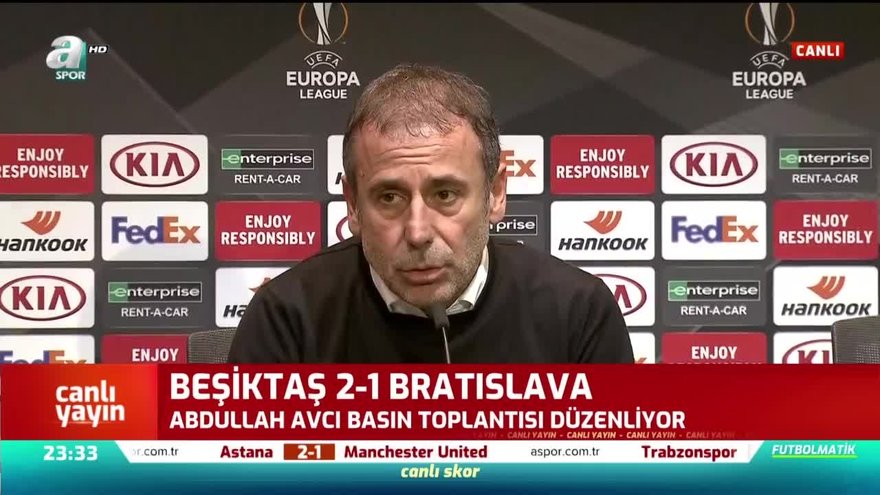 Beşiktaş'ın UEFA Avrupa Ligi K Grubu'nda Slovan Bratislava'yı 2-1 mağlup ettiği müsabakanın ardından Beşiktaş Teknik Direktörü Abdullah Avcı ve Slovan Bratislava Teknik Direktörü Jan Kozak, basın mensuplarına açıklamalarda bulundu.