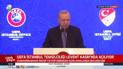 Başkan Recep Tayyip Erdoğan, UEFA İstanbul Temsilciliği'nin açılış töreninde açıklamalarda bulundu. Başkan Erdoğan, "UEFA'nın İstanbul temsilciliğinin açılışı vesilesiyle sizlerle olmaktan mutluluk duyuyorum. Temsilciliğin Türk futboluna hayırlara vesile olmasını temenni ediyorum." dedi.