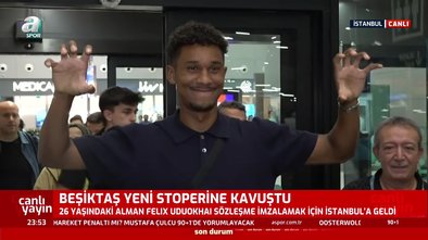 1.93'lük boyu ve güçlü fiziğiyle dikkat çeken Beşiktaş'ın yeni transferi Felix Uduokhai, TSİ 23.50'de İstanbul'a geldi. 26 yaşındaki stoper, havaalanı çıkışında Beşiktaş atkısıyla basın mensuplarına poz verdi. İşte ilk görüntüler...